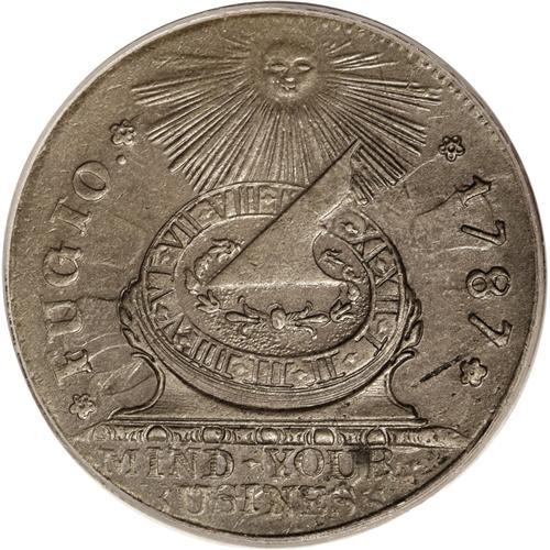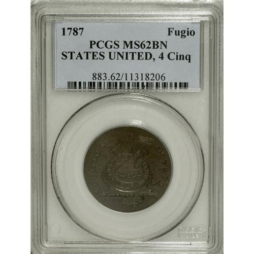 1787 1C Fugio Cent, STATES UNITED, Cinquefoils MS62 Br