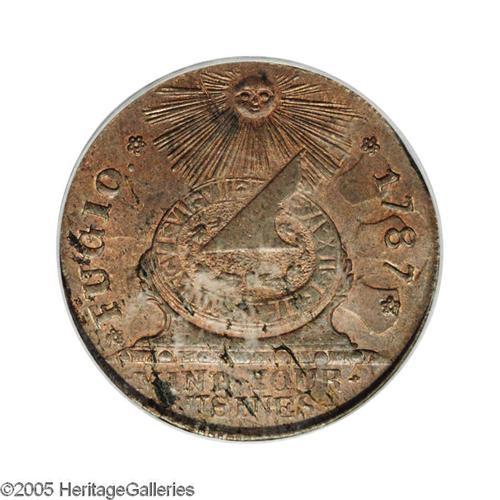 1787 1C Fugio Cent, STATES UNITED, Cinquefoils MS62 Re 1787[1C] Fugio Cent, STATES UNITED, Cinquefoi