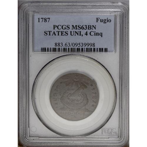 1787 1C Fugio Cent, STATES UNITED, Cinquefoils MS63 Br 1787[1C] Fugio Cent, STATES UNITED, Cinquefoi