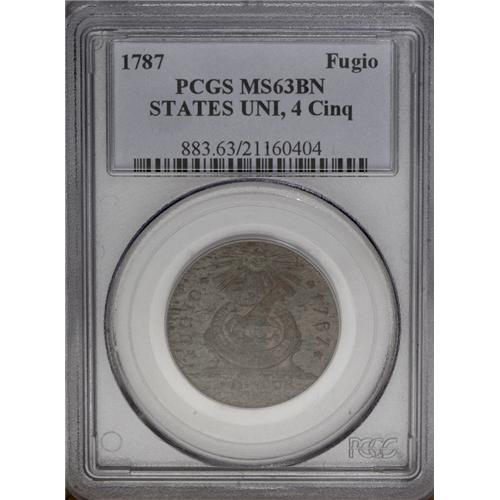 1787 1C Fugio Cent, STATES UNITED, Cinquefoils MS63 Br