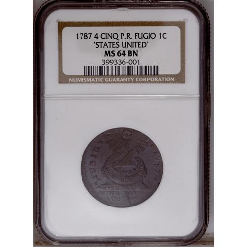 1787 1C Fugio Cent, STATES UNITED, Cinquefoils MS64 Br 1787[1C] Fugio Cent, STATES UNITED, Cinquefoi