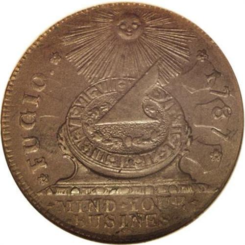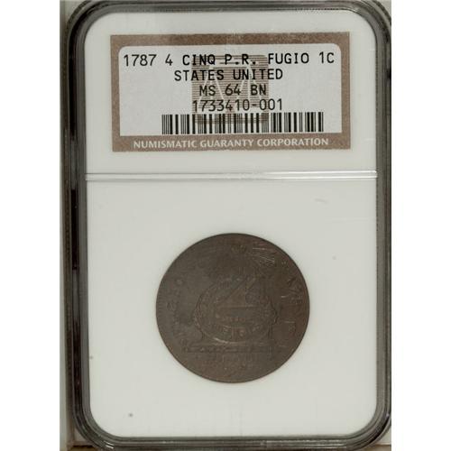 1787 1C Fugio Cent, STATES UNITED, Cinquefoils MS64 Br