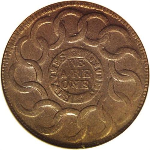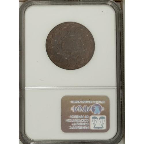 <B>1787<1C> Fugio Cent, STATES UNITED, Cinquefoils MS64 Brown NGC.</B></I> Newman 11-X, R.4. This is an attractive example that is undoubtedly from the Bank of New York hoard, as are nearly all high quality Fugio cents that survive today. Mahogany-brown color on the obverse is accented by lighter tan on certain of the devices. The reverse is somewhat lighter in overall appearance. Heavy obverse clash marks from the intertwined links of the reverse design are present on most examples of this variety. Pleasing surfaces are remarkable clean without the usually seen planchet fissures. Listed on page 83 of the 2007 <I>Guide Book.</B></I>