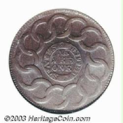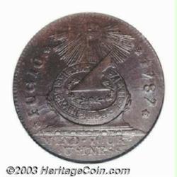 <table><tr><td><TABLE cellSpacing=0 cellPadding=0 width="100%" bgColor=#000000 border=0><TBODY> <TR><TD width="100%"><TABLE cellSpacing=1 cellPadding=3 width="100%" border=0><TBODY><TR><TD width="100%" bgColor=#79735c><FONT face=arial color=#ffffff size=3><B>Description</B> </FONT></TD></TR><TR><TD width="100%" bgColor=#ffffff><FONT face=arial size=2><B>1787 1C Fugio Cent, STATES UNITED, Cinquefoils MS65 Brown NGC.</B></I> Newman 13-X, R.1. Lovely chocolate-brown surfaces have a pleasing, glossy finish and mix with natural steel-blue overtones. As is often seen with high grade survivors of this more available die pairing (many originating from the Bank of New York hoard), there is prominent die clashing in the obverse fields. An outstanding representative of this important Colonial design. Listed on page 64 of the 2003 <I>Guide Book.</B></I><BR><I>From The Jones Beach Estate, Part II.</B></I> </FONT></TD></TR></TBODY></TABLE></TD></TR></TBODY></TABLE><BR><A name=PricesRealized></A><TABLE cellSpacing=0 cellPadding=0 width="100%" bgColor=#000000 border=0><TBODY><TR><TD width="100%"><TABLE cellSpacing=1 cellPadding=3 width="100%" border=0><TBODY><TR><TD width="100%" bgColor=#79735c><A name=PR><FONT face=arial color=#ffffff size=3><B>Previous Prices from Heritage Auctions</B> </FONT></A></TD></TR><TR><TD bgColor=#f6f6ed>No Prior Data Recorded </TD></TR><TR><TD bgColor=#ffffff><FONT face=arial size=1 ?>PLEASE NOTE: All prices realized reflect the final hammer price PLUS the buyer's premium in auctions that charge a buyer's premium. Each item has a notation at the top of the listing indicating whether that lot included a buyer's premium. Example: A item that sells with a final hammer price of $100 and a 20% buyer's premium will display with a price realized of $120. All information listed is intended to be as accurate as possible, but errors are possible. Please use this guide carefully and inform us of any inaccuracies. </FONT></TD></TR></TBODY></TABLE></TD></TR></TBODY></TABLE><BR><TABLE cellSpacing=0 cellPadding=0 width="100%" bgColor=#000000 border=0><TBODY><TR><TD width="100%"><TABLE cellSpacing=1 cellPadding=3 width="100%" border=0><TBODY><TR><TD width="100%" bgColor=#79735c colSpan=6><FONT face=arial color=#ffffff size=3><B>Price Guide*</B> </FONT></TD></TR><TR bgColor=#f6f6ed><TD align=middle><B>Grade</B> </TD><TD align=middle><B>Coin World<BR>(Trends)</B> </TD><TD align=middle><B>Numismedia<BR>Retail</B> </TD><TD align=middle><B>Numismedia<BR>Wholesale</B> </TD><TD align=middle><B>Coin<BR>Universe</B> </TD><TD align=middle><B>Heritage<BR>Value Index</B> </TD></TR><TR bgColor=#ffffff><TD align=middle>64</TD><TD align=right>---</TD><TD align=right>---</TD><TD align=right>---</TD><TD align=right>$4,350.00</TD><TD align=right>---</TD></TR><TR style="FONT-WEIGHT: bold" bgColor=#cccfdd><TD align=middle>65</TD><TD align=right>---</TD><TD align=right>---</TD><TD align=right>---</TD><TD align=right>---</TD><TD align=right>---</TD></TR><TR bgColor=#ffffff><TD align=middle>66</TD><TD align=right>---</TD><TD align=right>---</TD><TD align=right>---</TD><TD align=right>---</TD><TD align=right>---</TD></TR><TR bgColor=#ffffff><TD colSpan=6><FONT size=1>*All information listed is intended to be as accurate as possible, but errors are possible. No item may be returned or refused based on this information which is provided as a service to our customers. You should contact each pricing source directly to determine the accuracy of this information. </FONT></TD></TR></TBODY></TABLE></TD></TR></TBODY></TABLE><BR><TABLE cellSpacing=0 cellPadding=0 width="100%" bgColor=#000000 border=0><TBODY><TR><TD width="100%"><TABLE cellSpacing=1 cellPadding=3 width="100%" border=0><TBODY><TR><TD width="100%" bgColor=#79735c><FONT face=arial color=#ffffff size=3><B>Population Guide</B> </FONT></TD></TR><TR bgColor=#ffffff><TD align=middle><!-- Begin Output of Population Grid--><TABLE cellSpacing=0 cellPadding=0 width="100%" border=0><TBODY><TR><TD vAlign=center><TABLE cellSpacing=0 width="100%" border=1 cellsadding="3"><TBODY><TR><TD vAlign=center><TABLE cellSpacing=0 cellPadding=3 width="100%" border=1><TBODY><TR><TD vAlign=center align=middle bgColor=#f0f1e8 colSpan=2 <CENTER><FONT face=Arial size=2><B>PCGS Pop </B></FONT><CENTER></CENTER></TD><TD vAlign=center align=middle bgColor=#f0f1e8 colSpan=2><CENTER><FONT face=Arial size=2><B>NGC Pop</B></CENTER></FONT></TD></TR><TR><TD vAlign=center><FONT face=Arial size=2>(65)</FONT> </TD><TD vAlign=center align=right><FONT face=Arial size=2>2</FONT> </TD><TD vAlign=center><FONT face=Arial size=2>(65)</FONT> </TD><TD vAlign=center align=right><FONT face=Arial size=2>0</FONT> </TD></TR><TR><TD vAlign=center><FONT face=Arial size=2>(>65)</FONT> </TD><TD vAlign=center align=right><FONT face=Arial size=2>2</FONT> </TD><TD vAlign=center><FONT face=Arial size=2>(>65)</FONT> </TD><TD vAlign=center align=right><FONT face=Arial size=2>0</FONT> </TD></TR></TBODY></TABLE></TD></TR></TBODY></TABLE></TD></TR></TBODY></TABLE><!-- End Output of Population Grid--></TD></TR></TBODY></TABLE></TD></TR></TBODY></TABLE><BR><TABLE cellSpacing=0 cellPadding=0 width="100%" bgColor=#000000 border=0><TBODY><TR> Important notice: Heritage usually auctions material at the rate of 200-250 lots per hour. On some occasions eBay Live bid software or the Internet may not be able to keep up with the pace of the auction. We recommend placing a realistic absentee bid now as insurance to avoid disappointment. Occasionally the auctioneer may eliminate or reject an eBay Live bid, and the auctioneer may also reopen a lot after the close of the eBay live bidding (usually because we missed an audience bid), and may reject your bid even if it shows you as the winning bidder. By bidding via eBay Live, you agree that Heritage may award the lot to another bidder at its sole discretion under the circumstances described above or any other reasonable circumstances. Also please note that all Heritage lots purchased through e