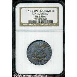 1787[1C] Fugio Cent, STATES UNITED, Cinquefoils MS65 Brown NGC.
