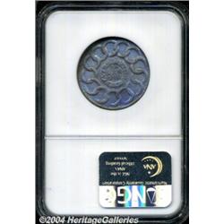 <B>1787<1C> Fugio Cent, STATES UNITED, Cinquefoils MS65 Brown NGC.</B></I> Newman 13-X, R.3. A lustrous and faintly prooflike example with lovely chocolate-brown and sky-blue colors. A minor horizontal mark east of the O in FUGIO is of little importance. Both the obverse and reverse dies proved durable; the obverse die was paired with four reverses while the familiar reverse die was eventually married to six different obverse dies. Struck from a boldly clashed obverse die. The reverse has several slender die cracks, as made, the most prominent at 6 o'clock. Listed on page 63 of the 2004 <I>Guide Book.</B></I> <BR><BR><B>Important notice:</B> Heritage usually auctions material at the rate of 200-250 lots per hour. On some occasions eBay Live bid software or the Internet may not be able to keep up with the pace of the auction. We recommend placing a realistic absentee bid now as insurance to avoid disappointment. Occasionally the auctioneer may eliminate or reject an eBay Live bid, and the auctioneer may also reopen a lot after the close of the eBay live bidding (usually because we missed an audience bid), and may reject your bid even if it shows you as the winning bidder. By bidding via eBay Live, you agree that Heritage may award the lot to another bidder at its sole discretion under the circumstances described above or any other reasonable circumstances. Since eBay bids are not shown to us until we open the lot on the floor, we treat those bids just like floor bids. In most cases the floor responds before the eBay bid is presented to us, due to Internet lag time, so for consistency we have made it a policy that floor bids are always considered first over tie eBay live bids. Also please note that all Heritage lots purchased through eBay Live carry a 20% Buyer's Premium. Please make sure you read the Terms and Conditions before you bid. </span></font></tr></table></td></tr></table>