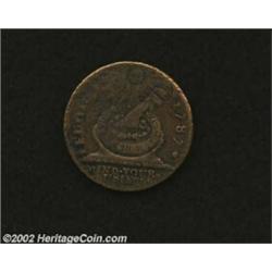 1787 1C Fugio Cent, STATES UNITED, Cinquefoils VF20 Corroded Uncertified. Newman 7-T, R.4. A medium brown example that has nearly all of the roman numerals visible on the sundial. Lightly porous, with a few wispy pinscratches on the upper left obverse. Important notice: We expect to be auctioning lots at the rate of 200-250 per hour. Sometimes eBay Premier live bid software cannot keep up with that pace, so we strongly recommend that you place a realistic proxy bid now as insurance to avoid disappointment. Also please note that all Heritage/CAA lots purchased through eBay Premier carry a 20% Buyer's Premium. Please make sure you read the Terms and Conditions.