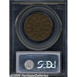<B>1787 1C Fugio Cent, STATES UNITED, Cinquefoils VF35 PCGS.</B></I> Newman 7-T, R.5. A better die variety, not conspicuous within the Bank of New York hoard. A chocolate-brown piece with nearly undisturbed surfaces, a couple of trivial pinscratches on the obverse are barely worthy of mention. Listed on page 69 of the 2005 <I>Guide Book.</B></I>