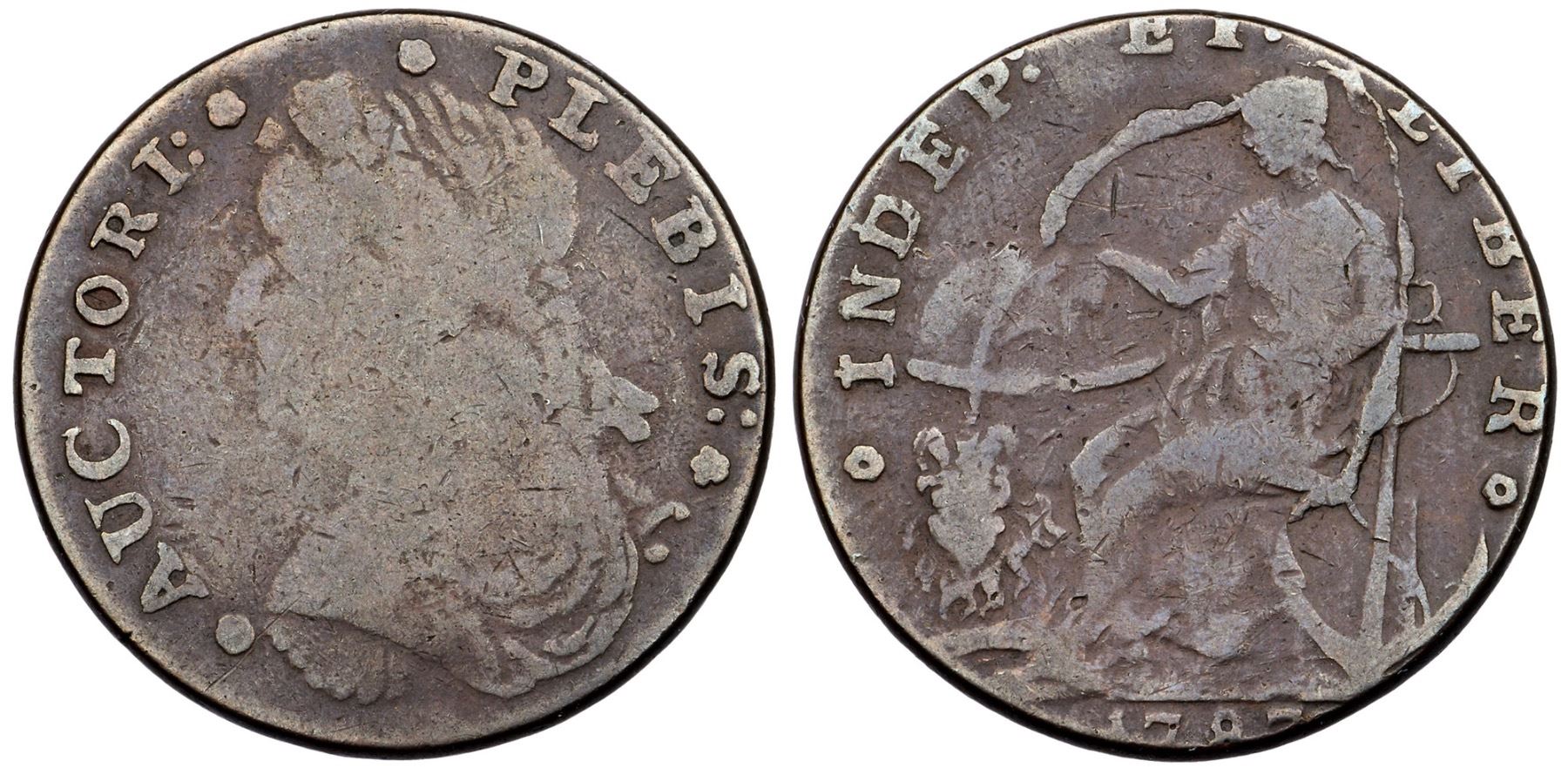 1787 Breen-1147 R-3 Auctori Plebis Token VF20Mostly medium steel with underlying chocolate browns. Fairly smooth surfaces with only the most trivial marks on either side. No verdigris. Smooth surfaces. LDS, with strong reverse internal die breaks. Ex; Bruce Wonder PMNA 4/2019 - Doug Durasoff