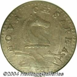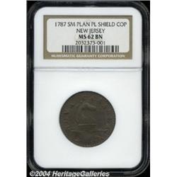 1787[COPPER] New Jersey Copper, Small Planchet, Plain Shield MS62 Brown NGC.