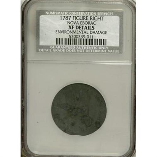 <B>1787 COPPER Figure Right Nova Eborac Copper, Seated Left--Environmental Damage--NCS. XF Details.</B></I> NGC Census: (0/0). PCGS Population (11/37). (#478)<BR><BR><b>Shipping:</b> Coins & Currency (<a target="_blank" href="http://www.heritageauctions.com/common/shipping.php">view shipping information</a>)