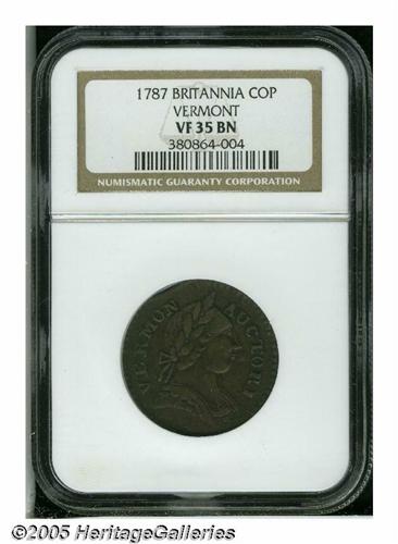 1787 COPPER Vermont Copper, BRITANNIA VF35 NGC. R