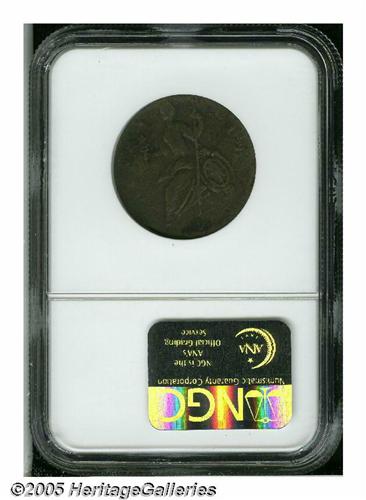 <B>1787<COPPER> Vermont Copper, BRITANNIA VF35 NGC.</B></I> RR-13, Bressett 17-V, R.1. A small curved clip (as made) is at 11:30. A mildly granular walnut-brown piece that has impressive detail for the variety. The reverse legends are weak as always, the reverse die in long former use striking evasion coppers. Listed on page 58 of the 2005 <I>Guide Book.</B></I>