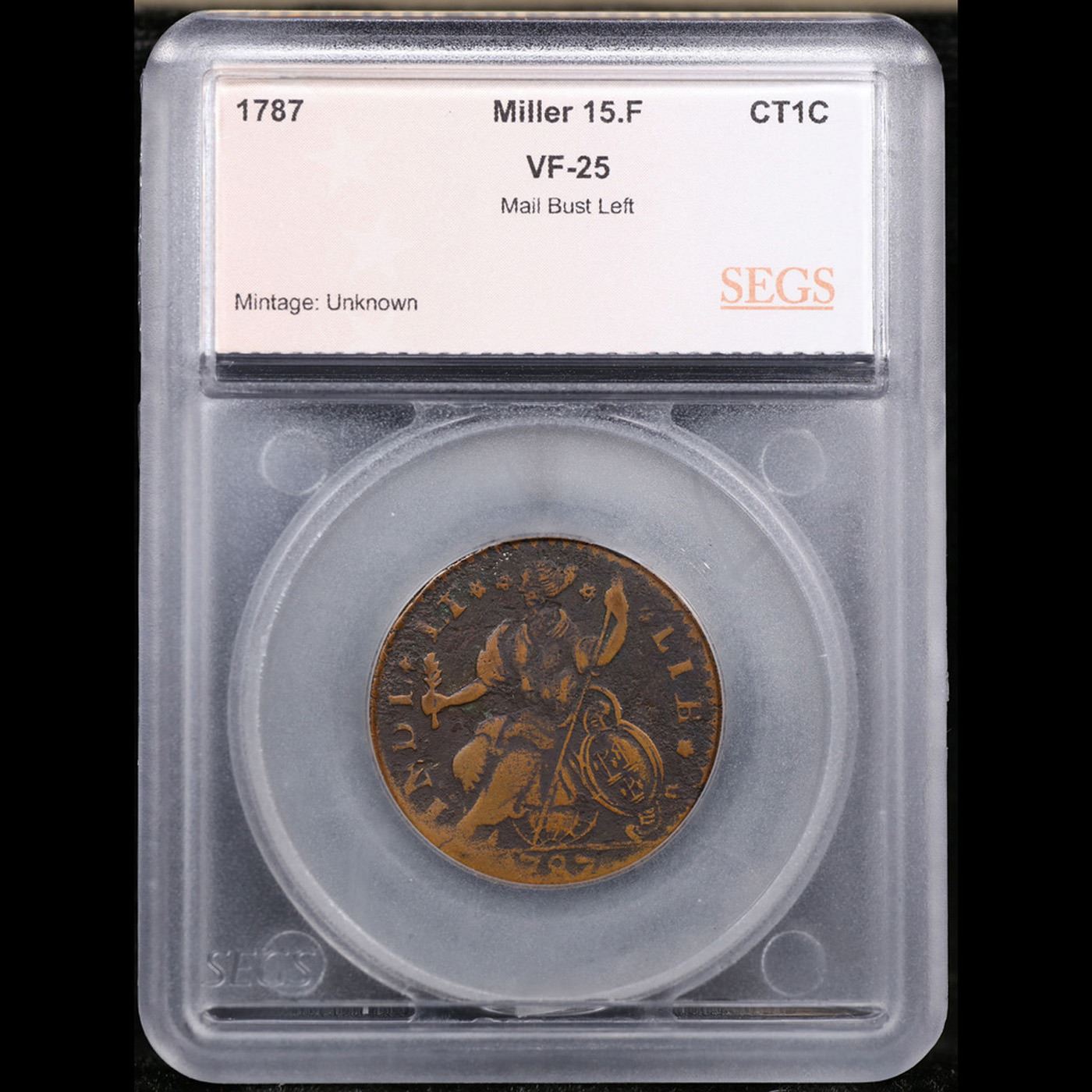1787 Connct Mail Bust Left, CONNECT Miller 15-F Colonial Cent 1c Graded vf25 By SEGS.