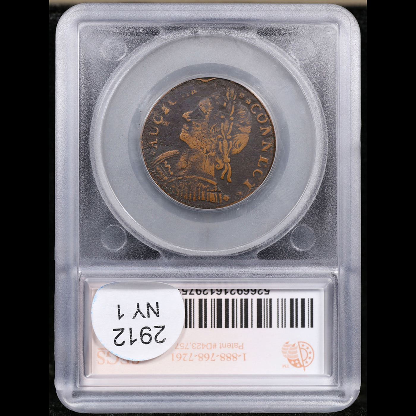 1787 Connct Mail Bust Left, CONNECT Colonial Cent Miller 15-F 1c Graded vf25 By SEGS