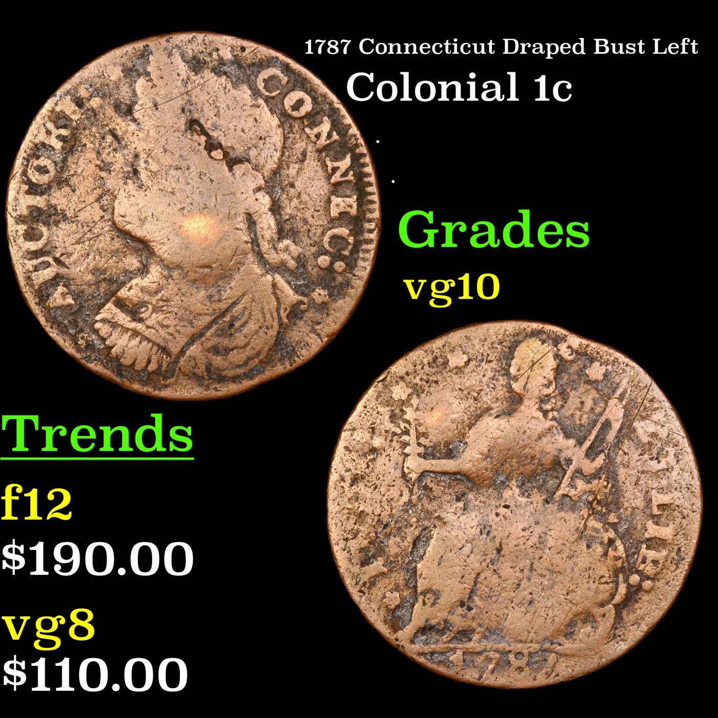 1787 Connecticut Draped Bust Left Colonial 1c Grades vg+