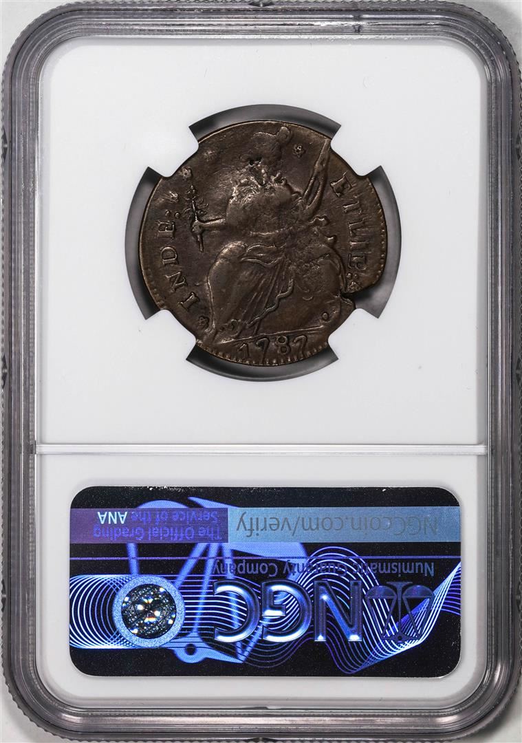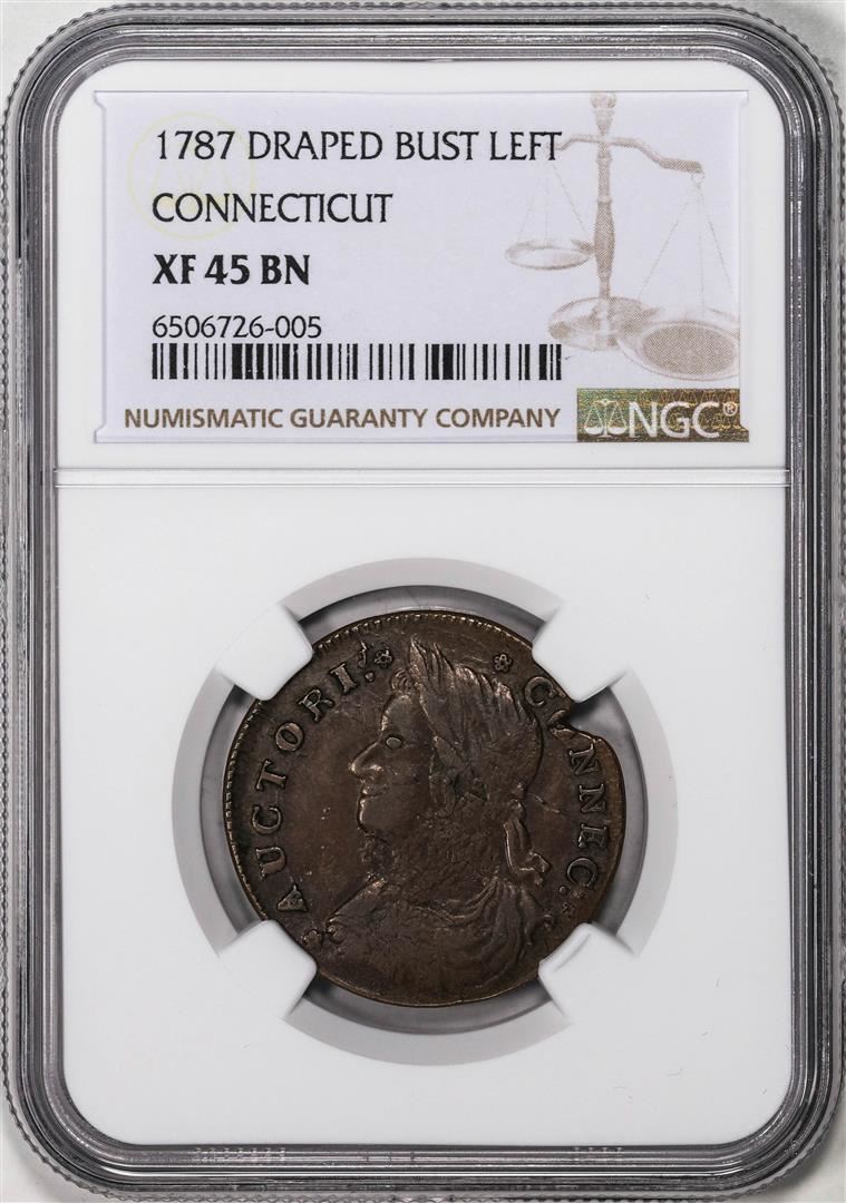 One 1787 Draped Bust Left Connecticut Colonial Copper 1/2P Coin NGC XF45BN. NGC Certified.