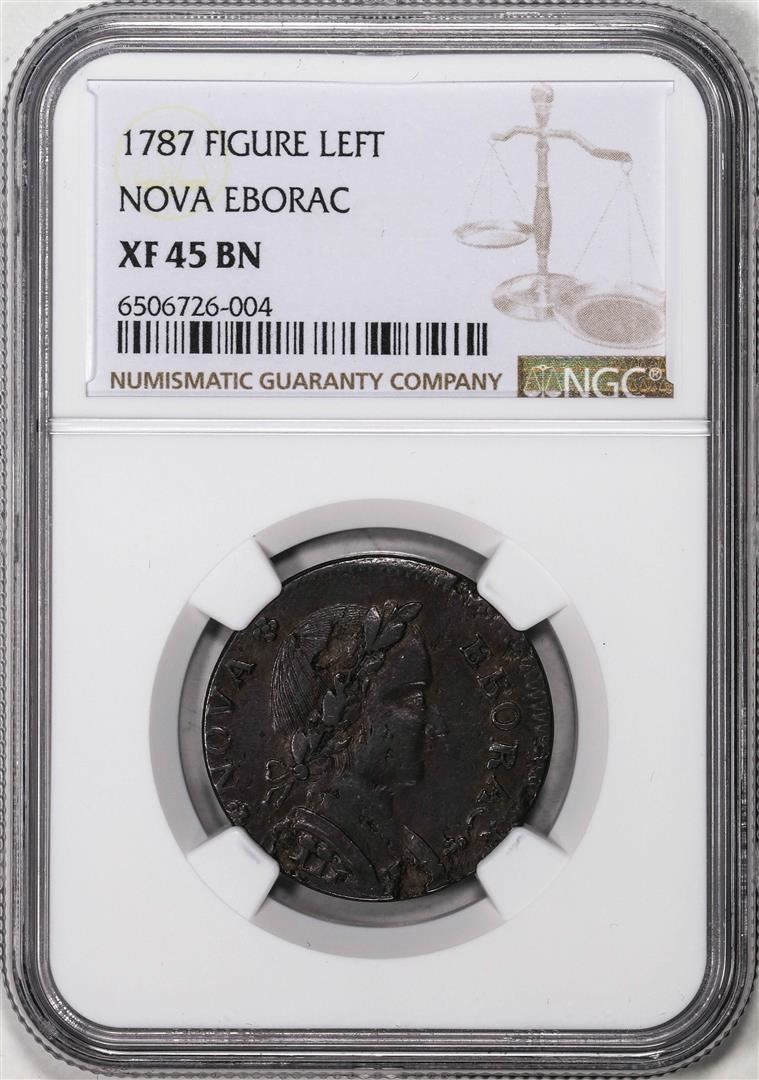 One 1787 Figure Left Nova Eborac Colonial 1/2P Coin NGC XF45BN. NGC Certified.