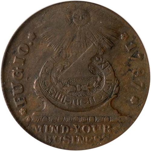 1787 Fugio 1C. Ptd Rays, Cinq, STATES PCGS EF40