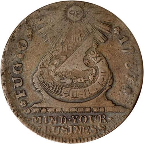1787 Fugio 1C. Ptd Rays, Cinq, STATES UNITED rev F15