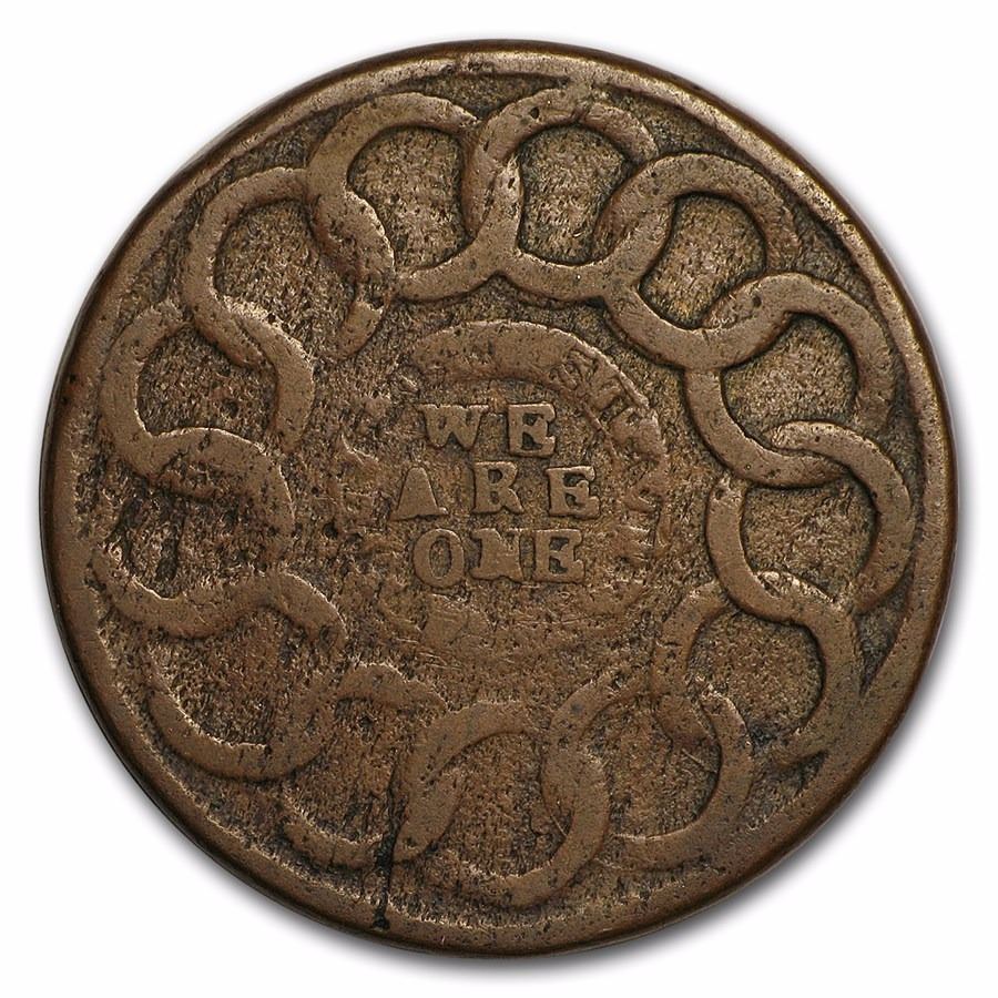 Reverse: Features 13 linked rings, representing the 13 new states, with the legend "WE ARE ONE."