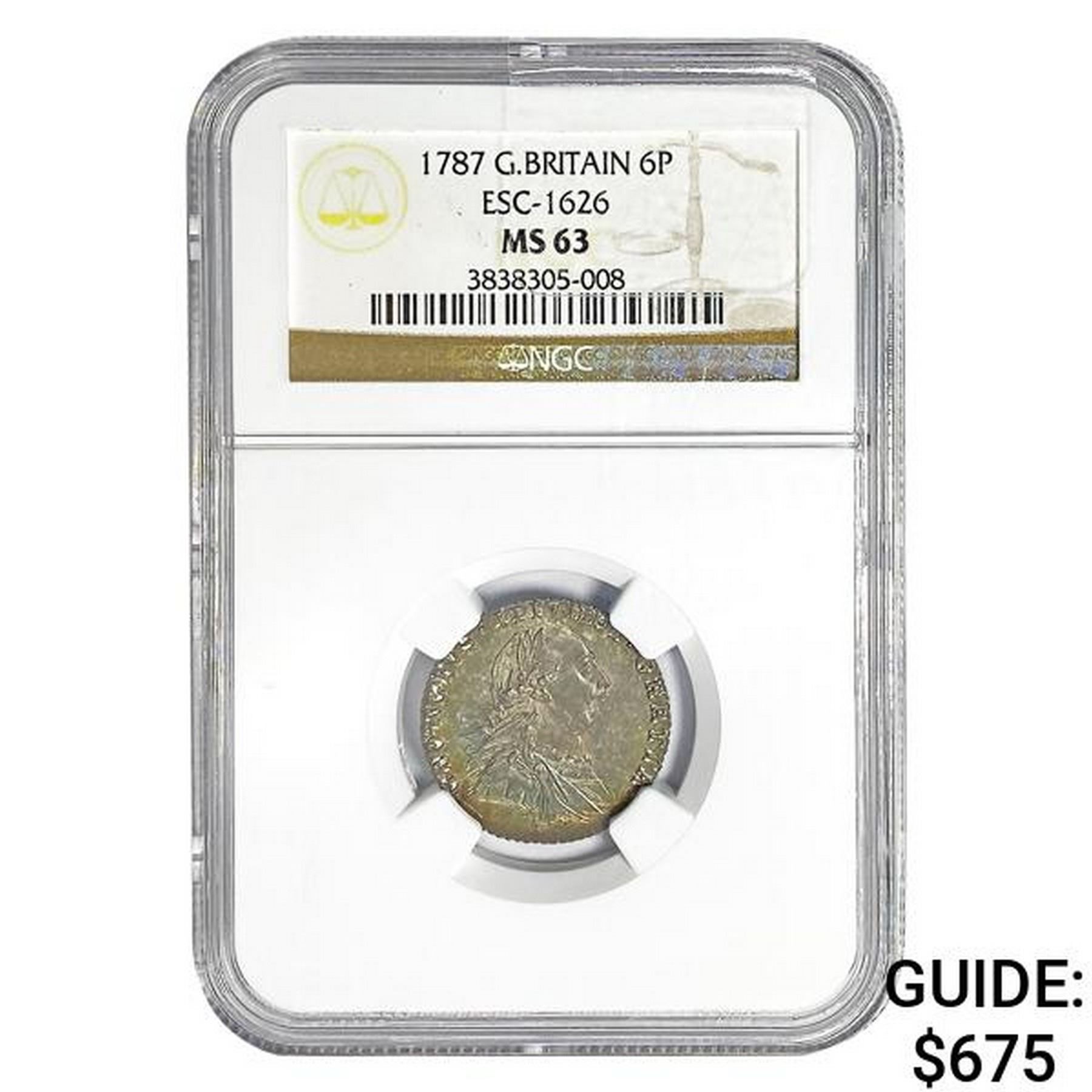 1787 G.Britain 6P ESC-1626 NGC MS63