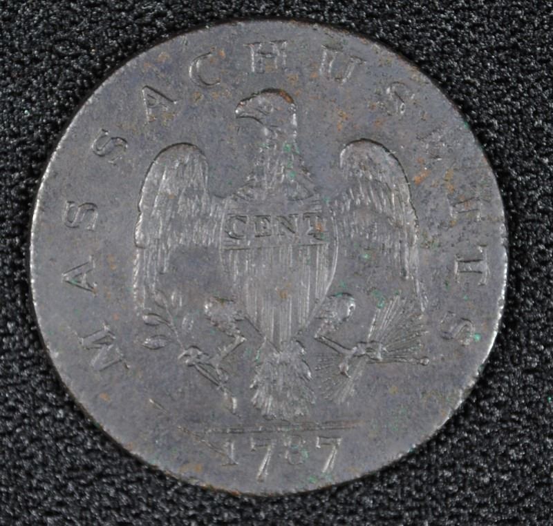 1787 MASSACHUSETTS CENT XF VERY NICE, VERY NICE SURFACES, RARE!
