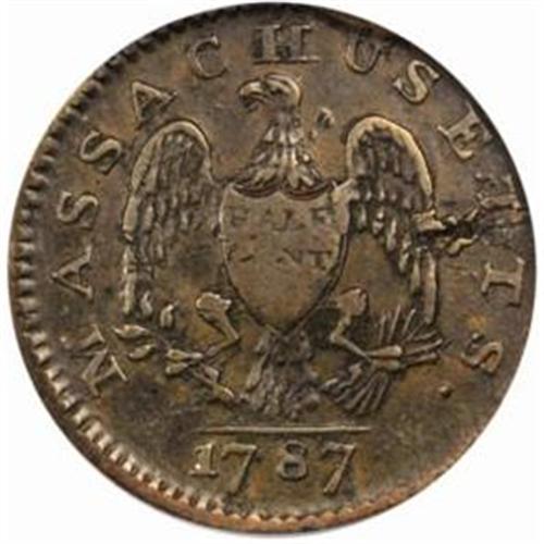 1787 Massachusetts Half Cent. Breen-966. EF Details--Reverse Damage (NCS).