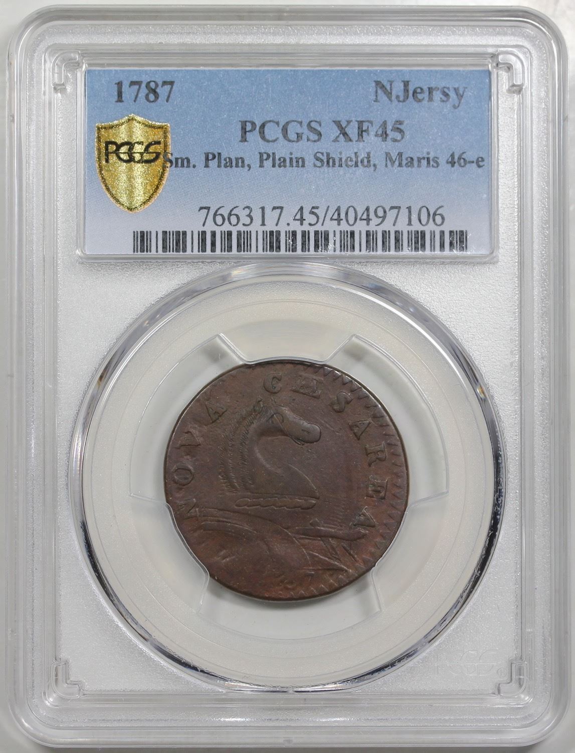 1787 New Jersey Copper, Maris 46-e, R1, PCGS XF45.