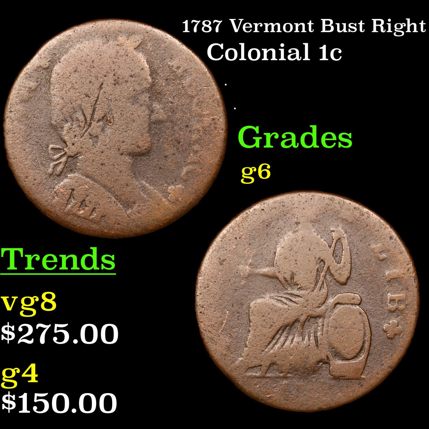 1787 Vermont Bust Right Colonial 1c Grades g+