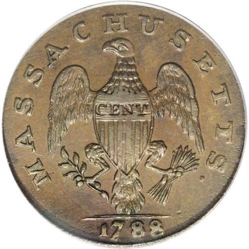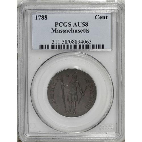 1788 1C Massachusetts Cent, Period AU58 PCGS. Ryder 10