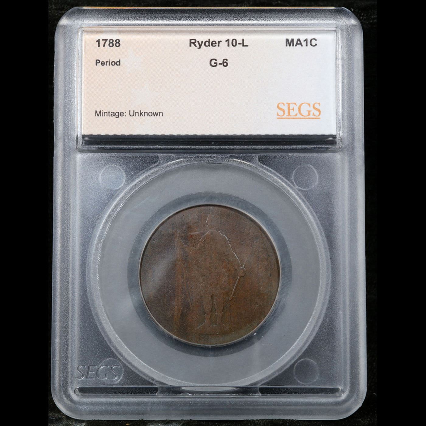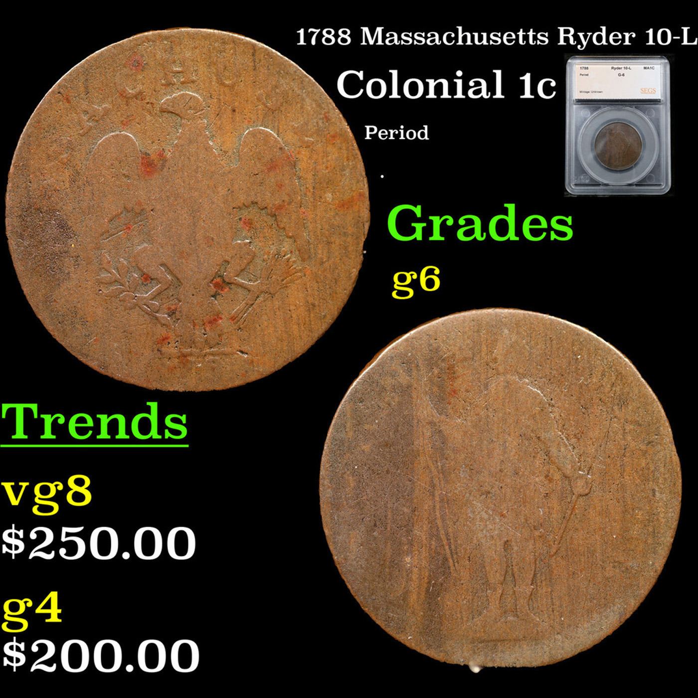 1788 Massachusetts Ryder 10-L Colonial Cent 1c Graded g6 By SEGS.