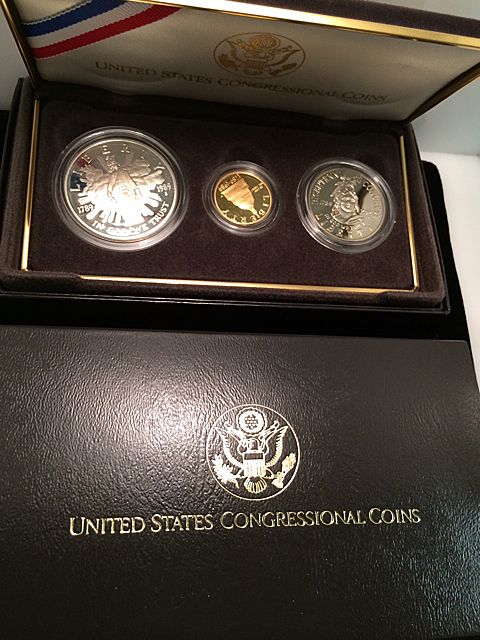 Estate 1789 - 1989 US congressional coin set including $5 gold coin in original box. Came from contents of estate safety deposit box.