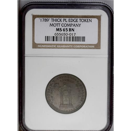 1789 TOKEN Mott Token, Thick Planchet, Plain Edge MS65