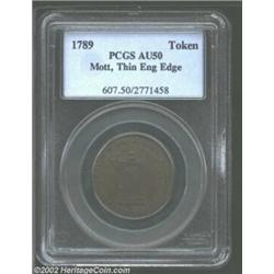 1789 TOKEN Mott Token, Thin Planchet, Engrailed Edge AU50 PCGS. Formerly offered as lot 13 in our 20