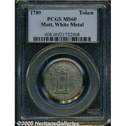 1789 TOKEN Mott Token, White Metal MS60 PCGS. Bre