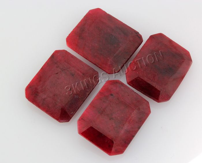 179.11ctw RubyEmeraldCut LooseGemstone lot of 4 **|**|** Mix Sizes 25-26x20-21x6-7mm Natural Ruby Gemstone Flat Emerald Shape lot of 4 ; MSRP: $600