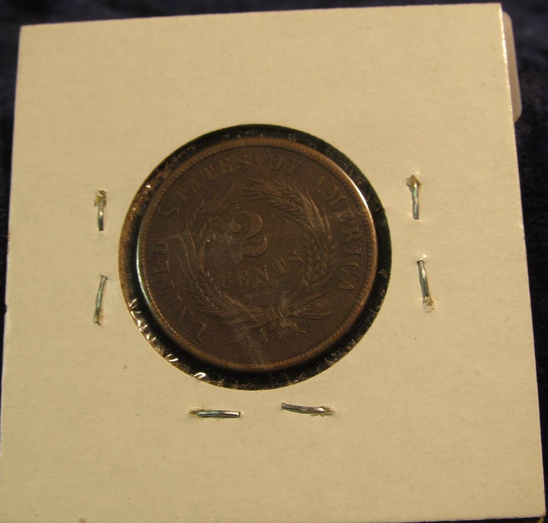 179. 1864 Large Motto U.S. Two Cent. VF 20. Redbook value $35.00.