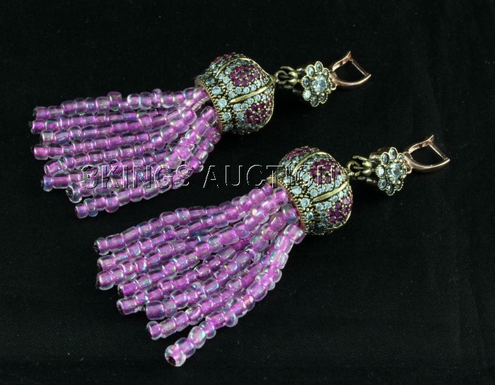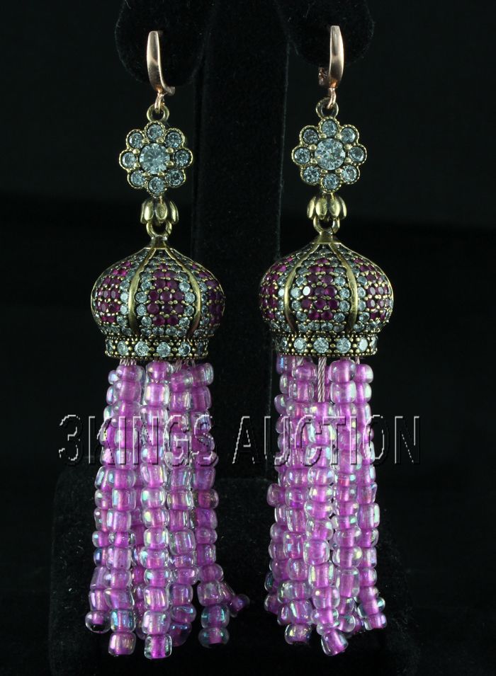 179.51ctw Victorian Silver Jewelry Dangling Earring **|**|** 4.5" long Classic Design Victorian Silver Jewelry Design Dangling Earring with Fuschia Gemstone Beads ; MSRP: $300
