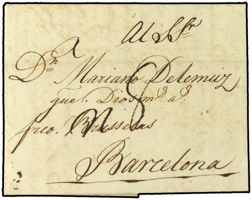 1790 (20-Agosto) ISERLOHN a BARCELONA (España). Marca manuscrita FCO. BRUSSELAS, tasada a la llegada con "8 reales". Al dorso marca BARCELONA/YNTERVENIDA.