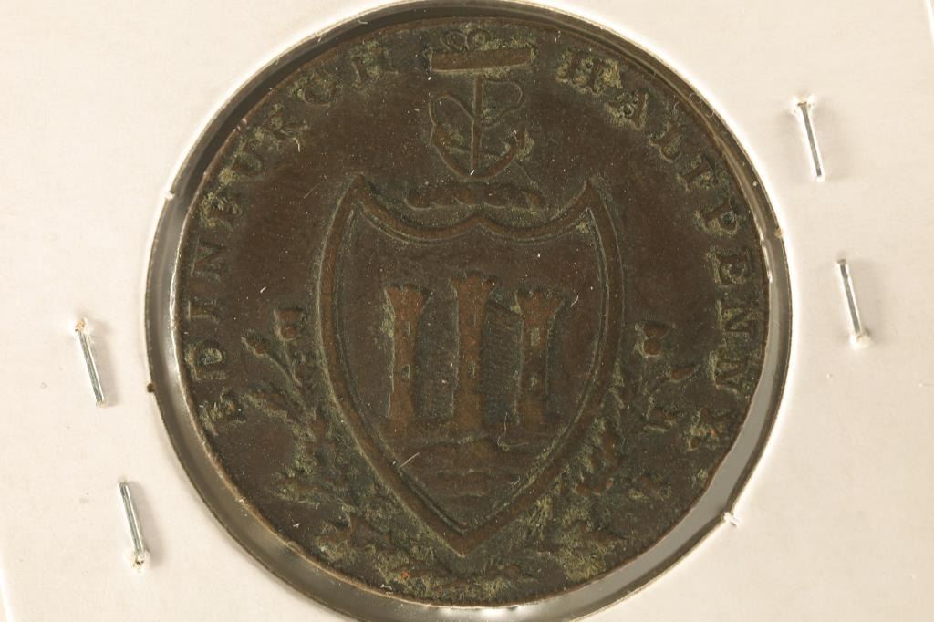 PROVINCIAL TOKENS PRIVATELY MINTED TOKEN COINAGE STRUCK AND USED DURING THE LATTER PART OF THE 19TH CENTURY IN ENGLAND. SIMILAR TO OUR CIVIL WAR AND HARD TIMES TOKENS. EDINBORGH HALF PENNY