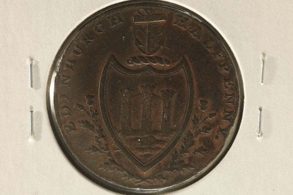PROVINCIAL TOKENS PRIVATELY MINTED TOKEN COINAGE STRUCK AND USED DURING THE LATTER PART OF THE 19TH CENTURY IN ENGLAND. SIMILAR TO OUR CIVIL WAR AND HARD TIMES TOKENS. EDINBURGH HALF PENNY