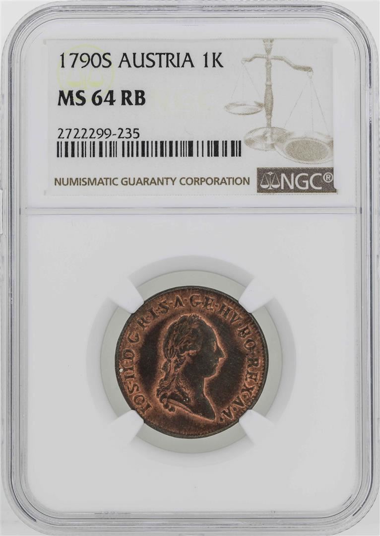One 1790-S Austria Joseph II Kreuzer Coin NGC MS62RB. NGC Certified.