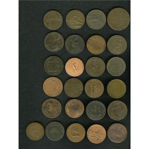 <B>1790s Great Britain Group Lot, 18th and 19th Century Condor and Other Tokens.</B></I> This lot consists of 25 British tokens issued in the late 1790s and into the early 1800s. Within this lot there might be some duplication, so we recommend a close examination of this lot. The current market value is approximately $200-$300.<BR><BR><b>Shipping:</b> Coin/Currency (<a target="_blank" href="http://www.heritageauctions.com/common/shipping.php">view shipping information</a>)