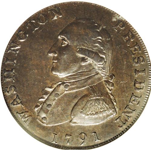<B>1791<1C> Washington Large Eagle Cent MS62 Brown NGC.</B></I> Baker-15, R.2. A smooth, deep brown example on a smooth and problem-free planchet. This variety, unlike its Small Eagle counterpart, is notable for having 13 arrows, 13 feathers in the eagle's tail, and 13 leaves in the olive branch. Listed on page 77 of the 2007 <I>Guide Book.</B></I>
