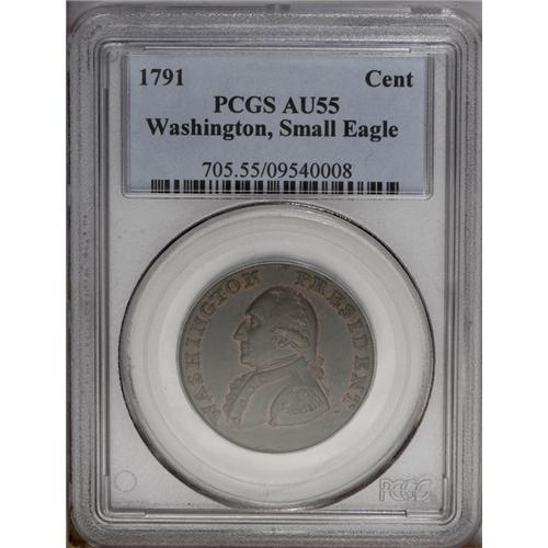 1791 1C Washington Small Eagle Cent AU55 PCGS. Baker-1 1791[1C] Washington Small Eagle Cent AU55 PCG