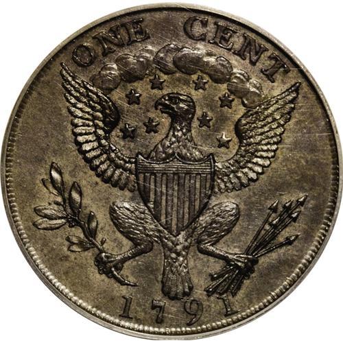 <B>1791 1C Washington Small Eagle Cent MS63 Brown PCGS.</B></I> Baker-16, R.3. This impressive piece is precisely struck, and offers blended chocolate-brown and medium brown toning. Abrasions and spots are absent, and the eye appeal is formidable for the designated grade. Encased in a green label holder. Listed on page 77 of the 2007 <I>Guide Book.</B></I><BR><I>From The Jones Beach Collection.</B></I><BR><BR><b>Shipping:</b> Coin/Currency (<a target="_blank" href="http://www.heritageauctions.com/common/shipping.php">view shipping information</a>)