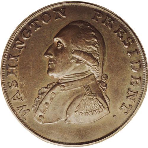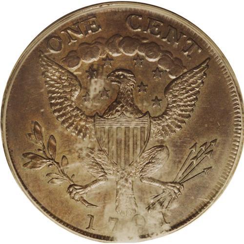 <B>1791<1C> Washington Small Eagle Cent MS64 Brown PCGS.</B></I> Baker-16, R.3. Medium to dark steel-brown surfaces are mildly reflective as a result of numerous die polishing lines in the fields. Scattered flecks of carbon rule out a Gem designation. Designed by Englishman John Gregory Hancock, the 1791 Washington Cents were apparently struck as trial pieces to obtain a Federal coinage contract. Listed on page 77 of the 2007 <I>Guide Book.</B></I>