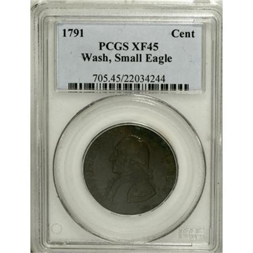 <B>1791 1C Washington Small Eagle Cent XF45 PCGS.</B></I> PCGS Population (15/131). NGC Census: (0/0). (#705)<BR><BR><b>Shipping:</b> Coins & Currency (<a target="_blank" href="http://www.heritageauctions.com/common/shipping.php">view shipping information</a>)