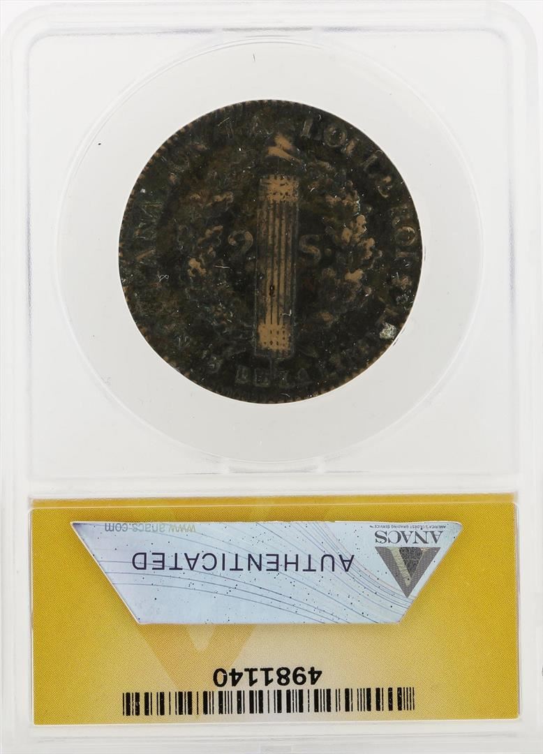 One 1791-A 2 Sols France Corroded Tooled Coin ANACS EF40 Details. ANACS Certified.